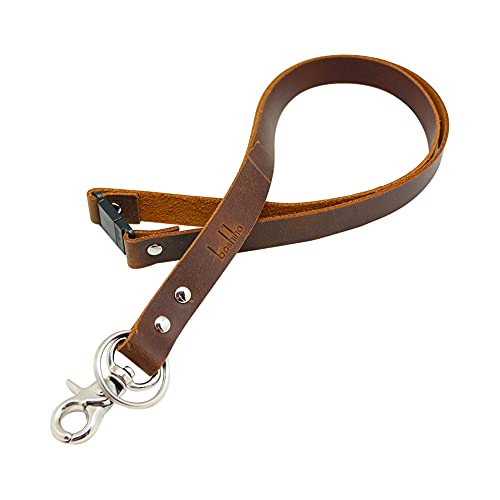 Nyckelring med snodd – kohud läder halsband med metalllås för ID-märkeshållare, nycklar, USB, mobiltelefon etc. (mörkbrun B)
