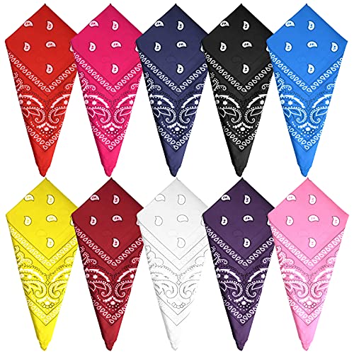 FEPITO 10 st Paisley bandanas blandade cowboy bandanas unisex nyhet tryck huvudsjal halsduk armband för vuxna och barn (10 färger)