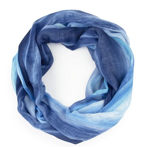 Gloop Loop tubhalsduk för kvinnor halsduk sidenlen luftig lätt med färgglatt mönster tryck, Blå-ljusblå-mörkblå, En Storlek