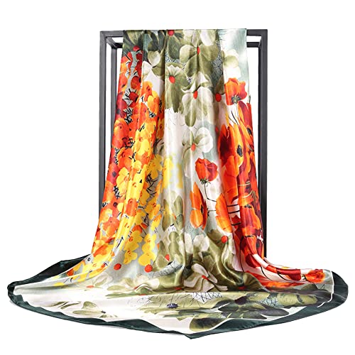 Ecroon Kvinnors scarf fyrkantig halsduk och halsdukar halsdukar fyrkantigt tryck mönster sidenband, D, One Size