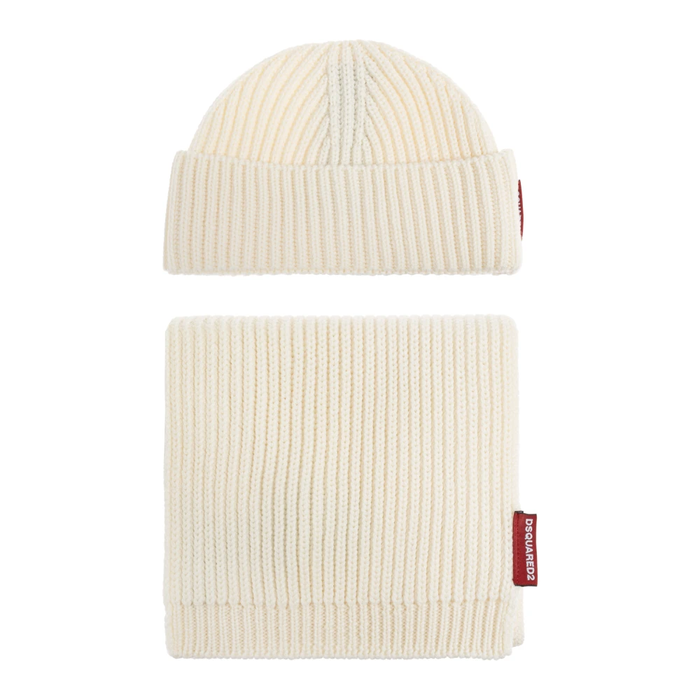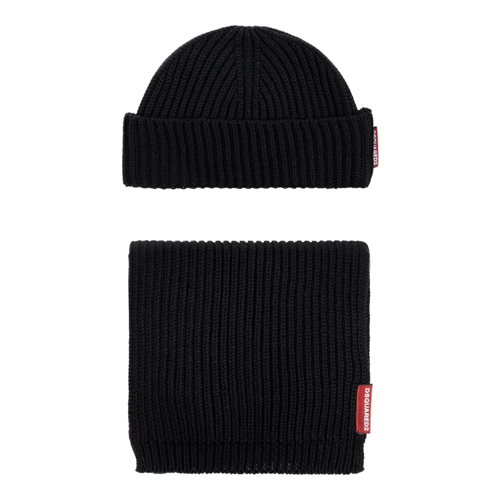 Dsquared2, Accessoarer , Herr, ONE Size, Ribbstickad Mössa och Halsduk i Ull