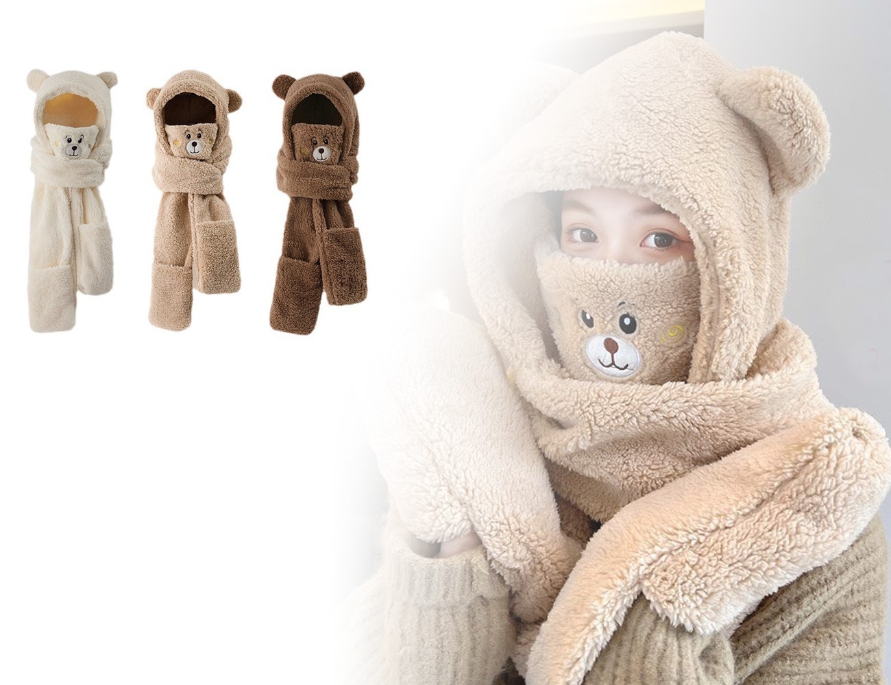 4-i-1 Varmt Set - Mössa, Halsduk, Handskar och Mask i Mysig Design
