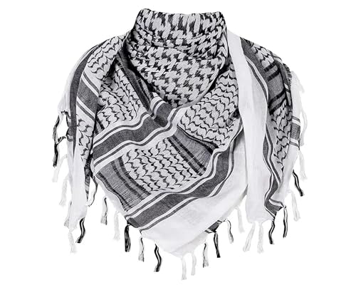 TRIXES Shemagh halsduk svart och vit ökenstil, Kufiya, Keffiyeh, ghutrah, Hattah 100 % bomull, lämplig för paintball, rollspel, sanddynattack, normal storlek, svart, XL