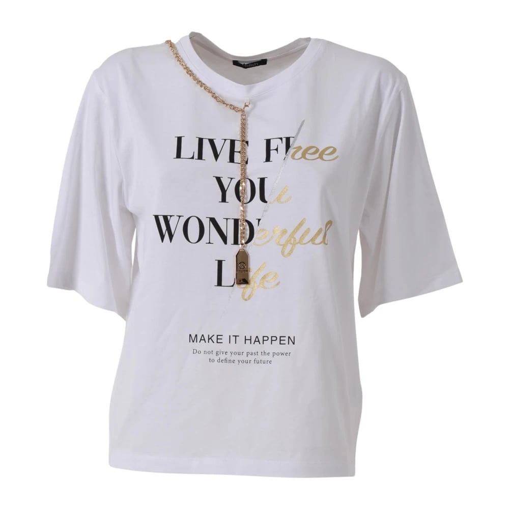 Relish, Toppar , Dam, S, Bomull, Vit T-shirt med rund halskedja