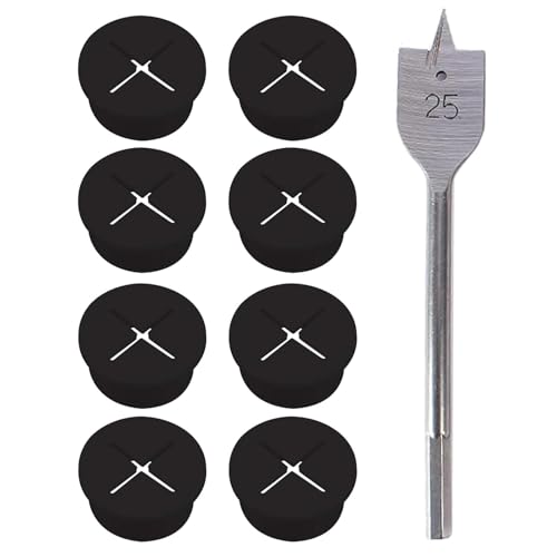 Flexibel kabelgenomföring i silikon, kabelgenomföring i gummi, för skrivbord, hålskydd, 20 mm, svart kabelgenomföring för kontor, arbetsplats, hemmatillbehör (med 25 mm borr), 8 stycken