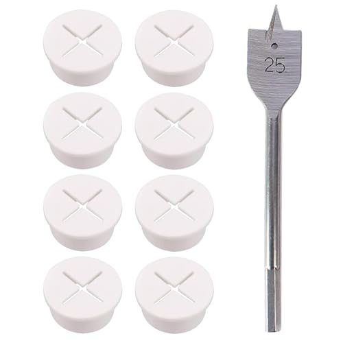 Flexibel kabelgenomföring i silikon, kabelgenomföring i gummi, för skrivbord, hålskydd, 20 mm, vit kabelgenomföring för kontor, arbetsplats, hemmatillbehör (med 25 mm borr), 8 stycken