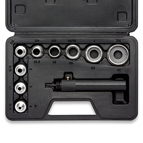NEIKO 02614A utbytbart stort hålhålslagningsverktygsset, 10 delar, packningstillverkare, kraftig packningsstans set, inkluderar hålslagare verktyg bärväska, läderstans set, svart