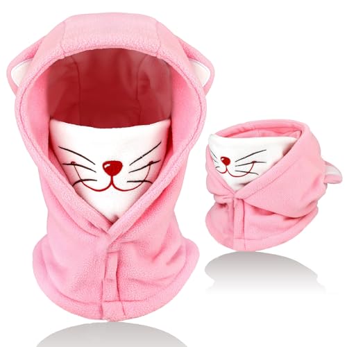 AYPOW Barn vinter termo fleece balaklava 4–12 år, multifunktionell vindtät justerbar ansiktsmask skidmask, varm mössa stormmask halsvärmare halsduk pojkar flickor utomhusaktiviteter, Katt rosa A, one