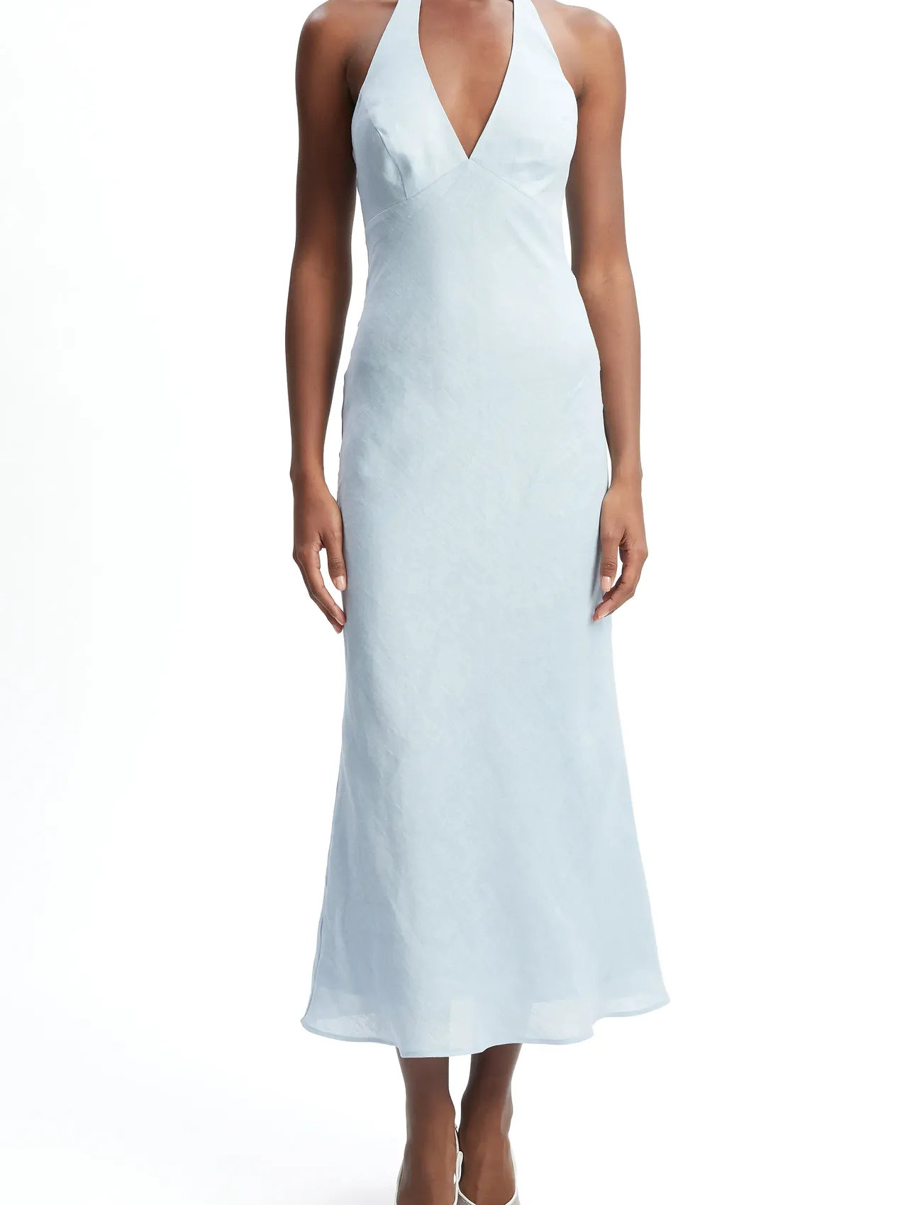 Bardot Paola Halter Linen Midi Dress - Blue - 34