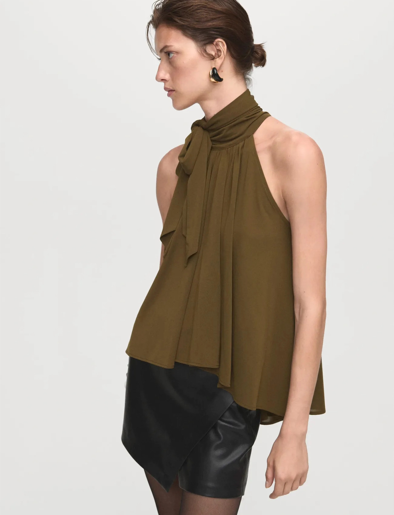 Dante6 Dante6-Elody Satin Halter Top - Khaki green - 42