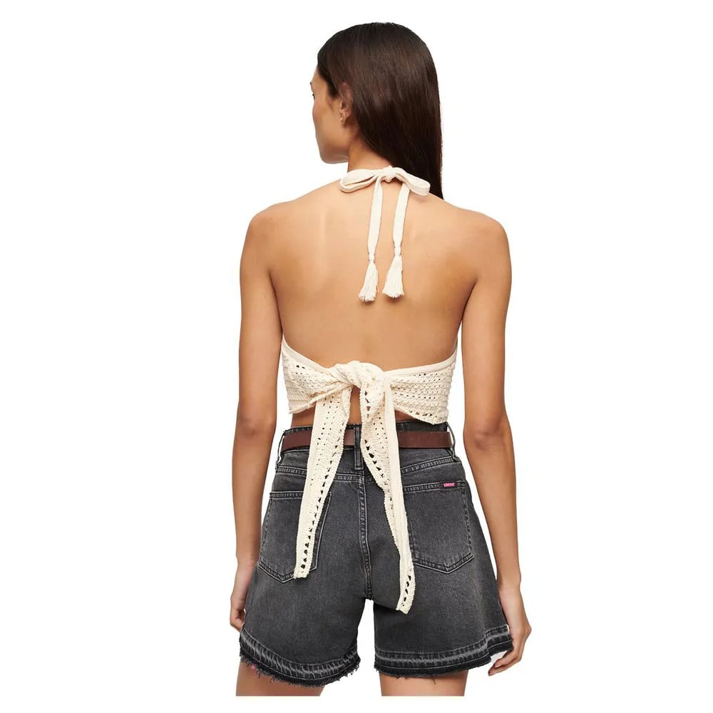 Superdry Crop Halter Crochet Sleeveless Top Beige M Kvinna