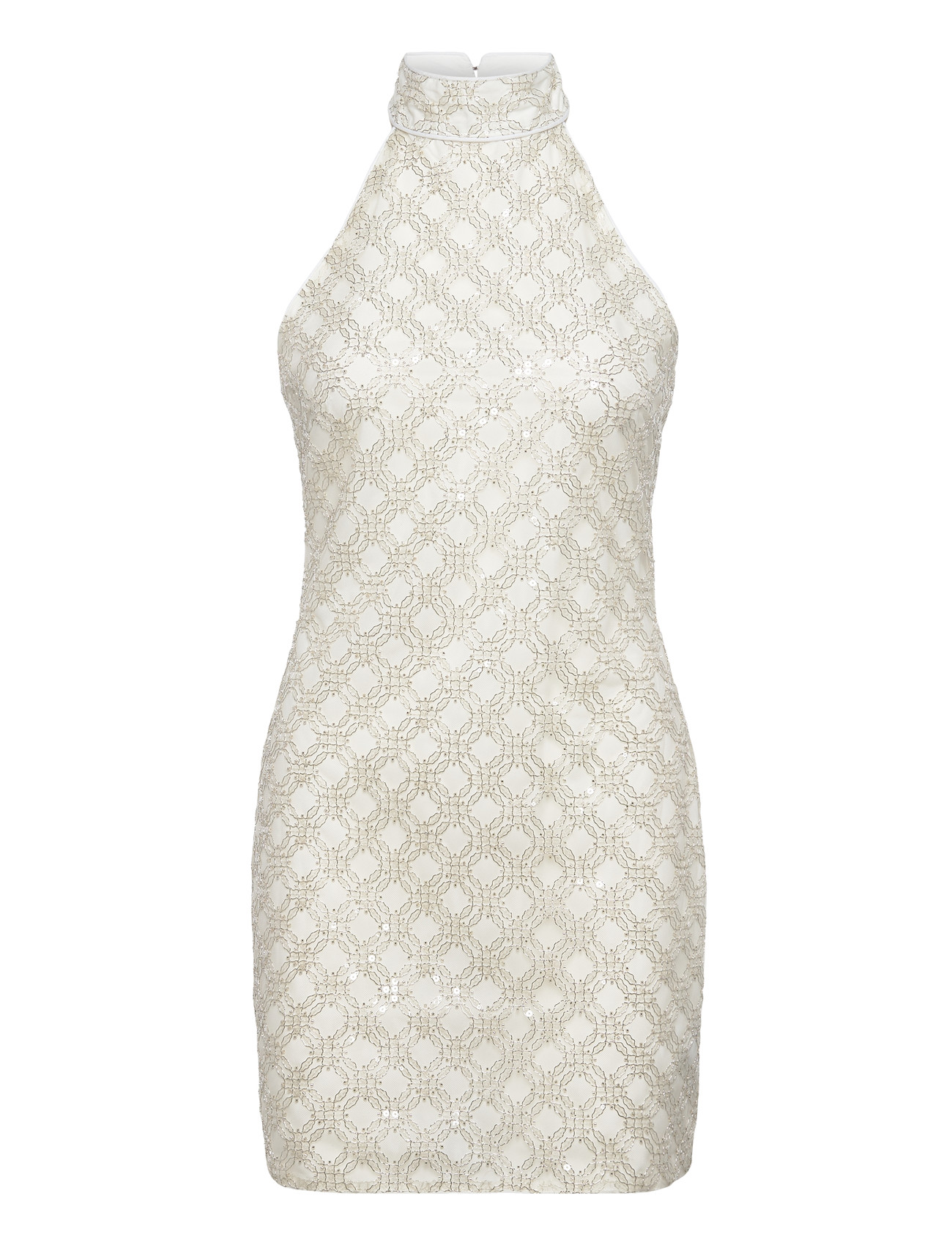 ROTATE Birger Christensen Beaded Halterneck Dress - White - 36
