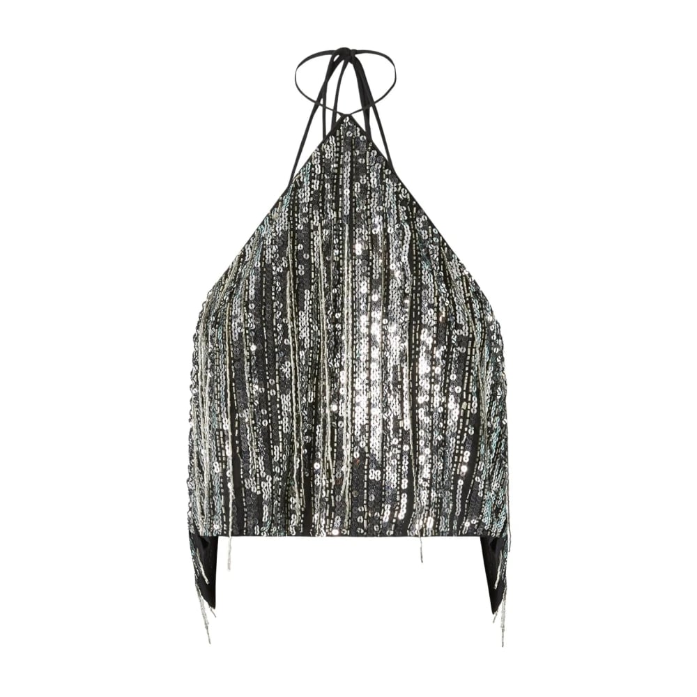 Pinko, Toppar , Dam, XS, Paljetter, Svart Paljett Frans Halterneck Topp