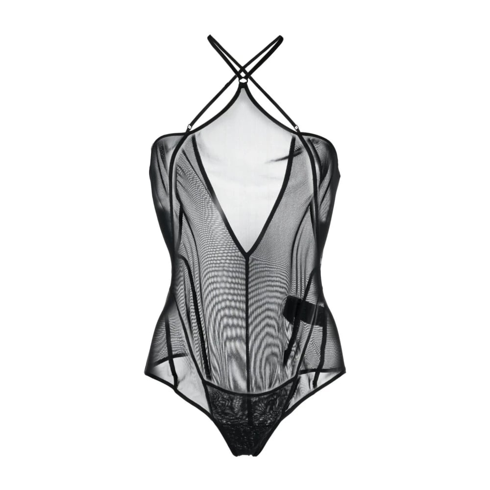 Knwls, Toppar , Dam, S, Svart Halterneck Topp med Korsade Band