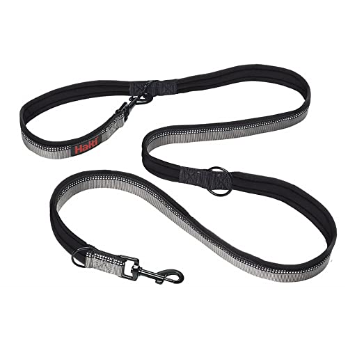 HALTI multifunktionskoppel – träningskoppel med neoprenstoppning, 3M-reflektortyg och justerbara längdalternativ. Lämplig för små och medelstora hundar (storlek L, svart)