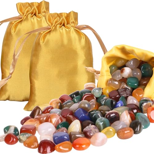 Kisvic Ädelstensset, blandning av halvädelstenar, praktisk i färgglad tygpåse, naturliga trumstenar i olika storlekar 25–30 mm