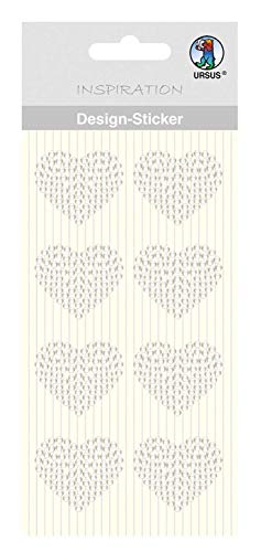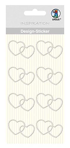 URSUS 75070044 design klistermärke, hjärtan av halvädelstenar, självhäftande, lätt att ta bort från folien, 8 stycken, vit
