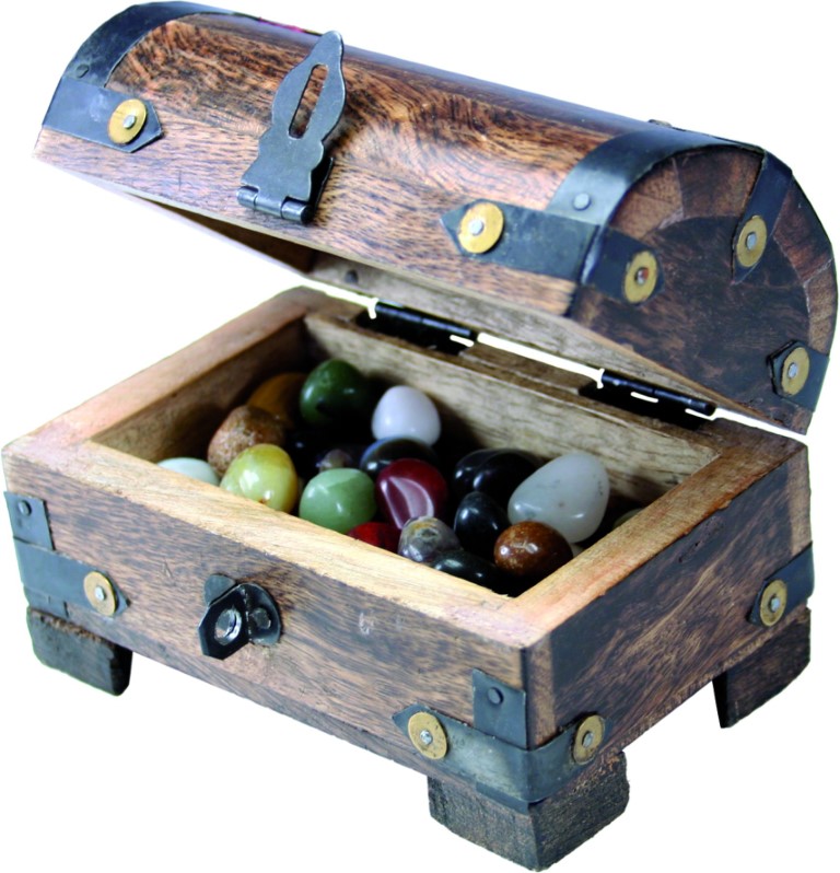 Skattkista med 150 g halvädelstenar, 11 x 7 x 9 cm