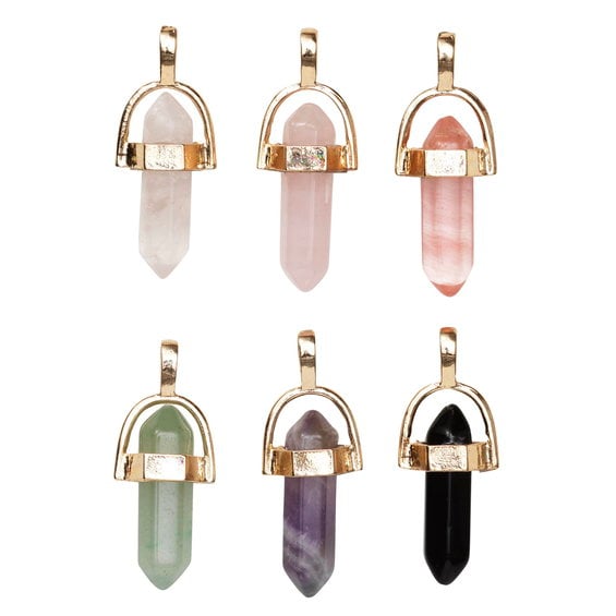 Halvädelstenar i silverfärgat hänge charms 6 st