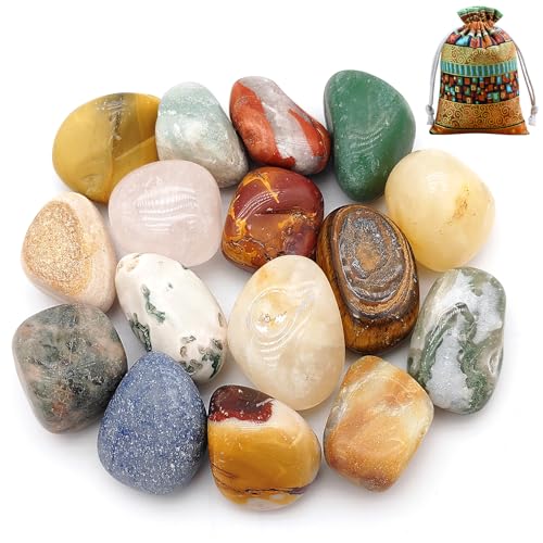 Halvädelstenar – ca. 50 stycken i olika storlekar (1,3–3,1) cm, naturliga färgglada ädelstenar för barn för dekorativa ändamål, häxor/saker och så vidare med påsen