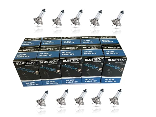 BLUETECH 10 stycken H7 halogen lampa billampa 30 % mer ljus 12 V 55 W PX26d strålkastare lampa ersättningslampor halvljus helljus dimljus. Setpris