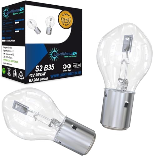 LIGHTWORLD24 BA20d S2 35/35W 12V motorcykel halogenstrålkastare superstarkt helljus halvljus skoter moped skoter bilux lampa glödlampor set om 2
