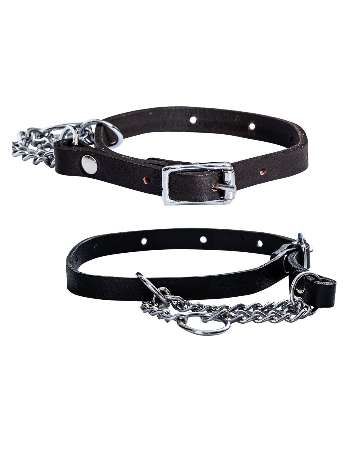 Hundhalsband Läder Halvstryp - Ställbar, Svart