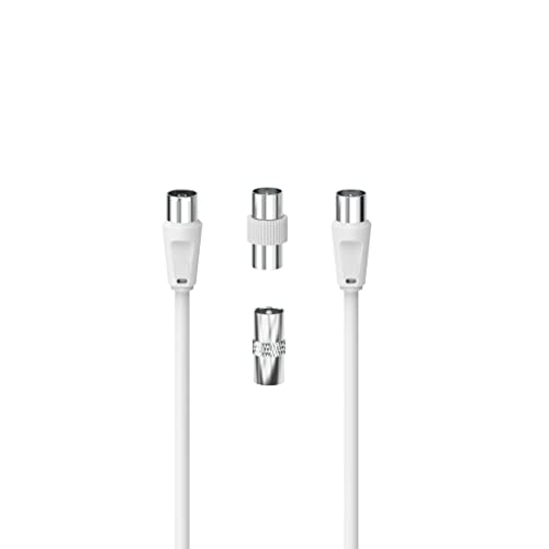 Hama TV-antennkabel + 2 adaptrar - 10 års garanti (koaxialkabel, 5 m, M/F, 75 Ohm, dubbel avskärmning 75 db, satellitkoaxialkabel, TV-anslutning till väggmonterad TV-kontakt eller avkodare) vit