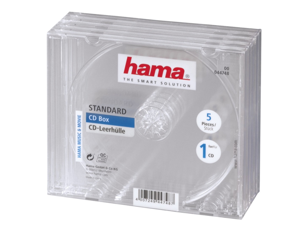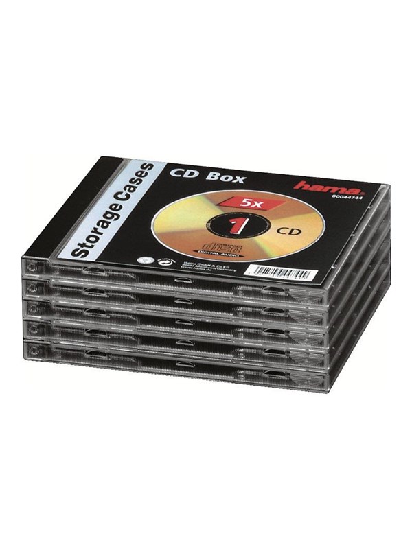 Hama CD Jewel Case Standard, Pack 5 C-shell etui 1 diske Sort, Transparent
