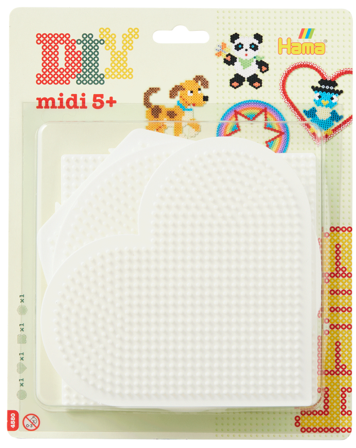 Hama: Midi Pärlplattor - 4 Stora (Rund, Hjärta, Fyrkant och Hexagon)