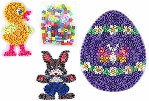 Hama Midi-pärlor, pärlplattor, set 26 påsk, ägg, harar och kycklingar, strykinstruktion i blisterpåse