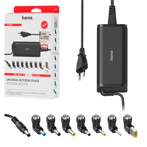 Hama Notebook strömförsörjning 15 V, 19 V, 45 W (universalströmförsörjning för bärbar dator, laptop laddare inkl. 8 notebook-kontakter för vanliga modeller, strömförsörjning för bärbar dator över hela
