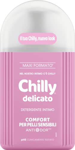 Chilly, Delikat rengöringsmedel, komfort för känslig hud, med anti-lukt, intim hygien, berikad med mjukgörande egenskaper Aloe och Hamamelis, pH 5, kliniskt testad - 300 ml