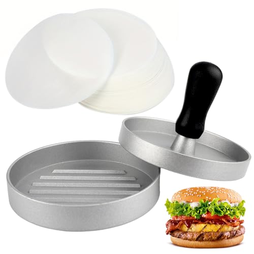 Hamburgarpress med 50 bakplåtar, hamburgare pattie press för tillverkning av grillning, bakning, fyllda hamburgare, nötköttsburgare