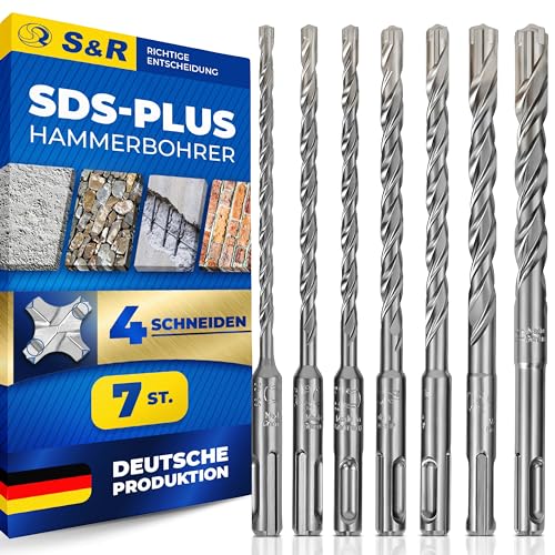 S&R Hammarborrsats 7 delar, industrikvalitet Tillverkad i Tyskland, PGM-certifierad SDS 4 plus, hårdmetall 4-eggad, premium betongborrsats för armerad betong, granit, sten, längd 160 mm / 100 mm