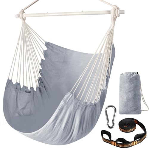 Chihee Hängstol gungstol stark metall hopfällbar spridare bar bärbar hängande stol max 150 kg bekväm sits uteplats gräsmatta stol bomullsblandning för överlägsen komfort hållbarhet inomhus utomhus