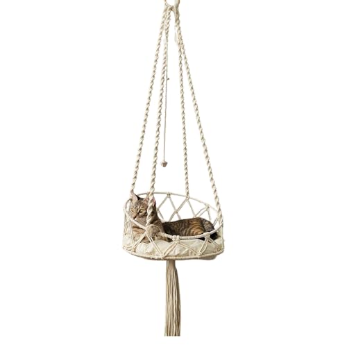 Liuyoyo Macrame Cat Hammock Säng, Handvävda Katter Säng med Kudde, Hängande Inomhus Boho Kitten Swing Sängar för Att Spela Sleeping, Handväven Boho Katt Swing med Hängande Kit