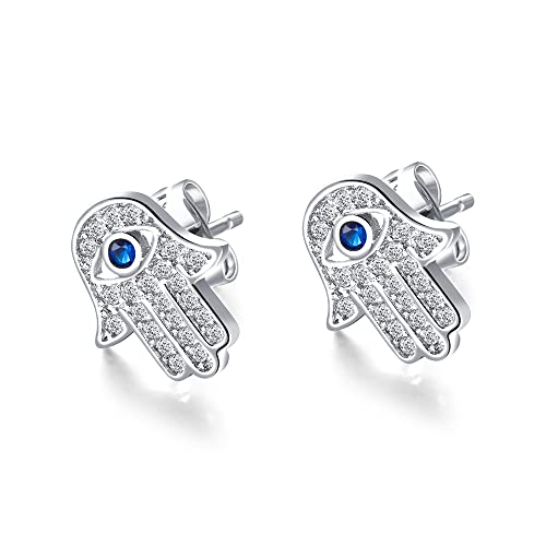 Evil Eye Protection Hamsa Hand of Fatima stiftörhänge för kvinnor flickor 18K guldstolpe rostfritt stål kubisk zirkonia allergivänlig läcker CZ bästa vän smycken, Metall, Kubisk zirkonia