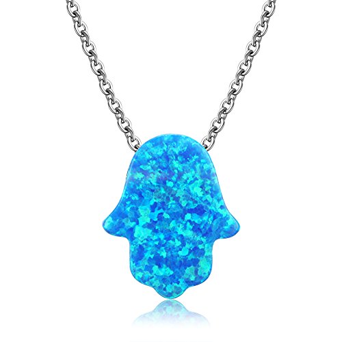 Hamsa Hand of Fatima hänge halsband sterling silver 925 syntetisk opal justerbar 16 tum + 2 tum kabelkedja e sterlingsilver, colore: BLÅ, cod. TZN015-11BC