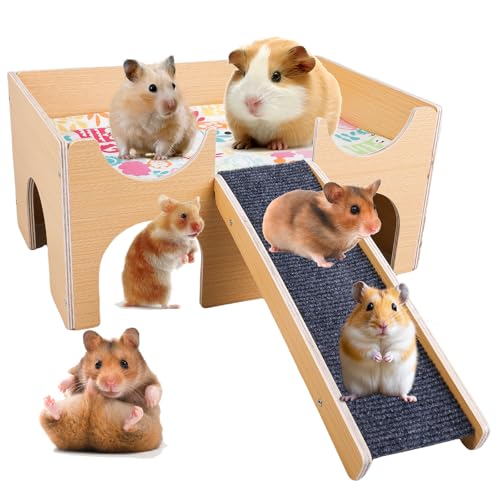 GHWMYD höjak marsvin hus av trä, stort gömställe för dvärg hamster racingmöss degus taggmöss kanin, små husdjur leksak tillbehör, 40 x 17 x 24 cm
