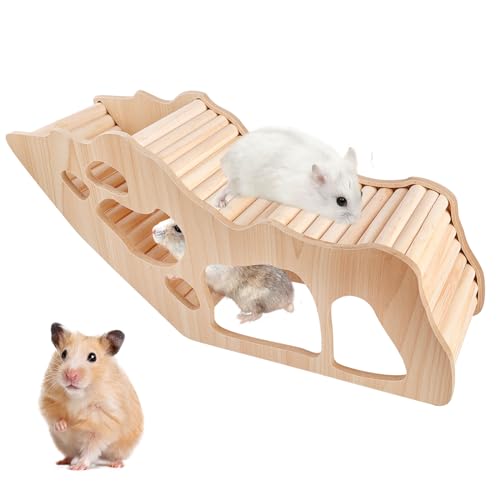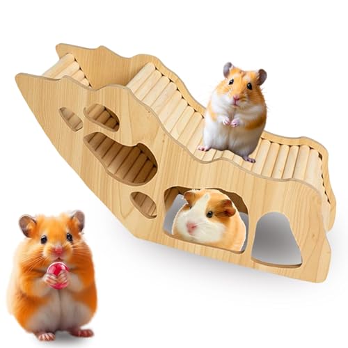 Hamster tillbehör, hamster hus leksaksrum, trappa, hamstertunnel, tillbehör, hamsterhus av trä, dekoration, hamsterbur tillbehör, tunnlar hamstrar (32 × 10,8 × 15,3 cm) marsvin hus