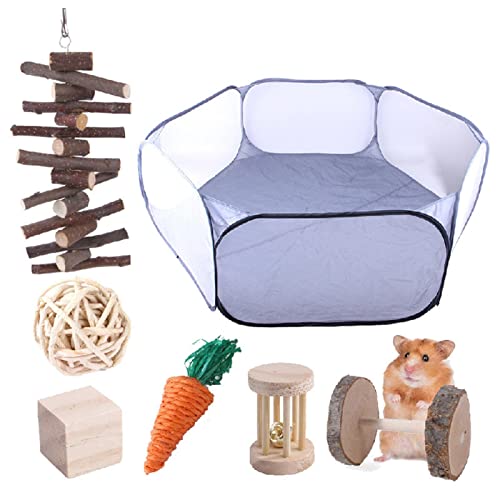 Abonda Tuggleksaker för hamster, hållbara tuggleksaker i trä, tillbehör med spelpenna, naturlig tandvård, stegrulle för ryska gerbiler, arsvin