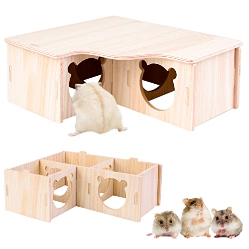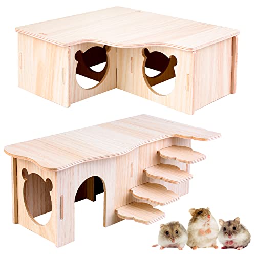 Vegena 2 stycken hamsterhus, hamsterhus av trä, hamstrar flerkammarhus, hamster hörnhus trä hamsterhus hamster gömställe, dvärghamster tillbehör för buren för racermöss råttor marsvin