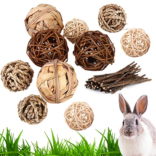 Vegena 10 stycken tuggbollar marsvin – små djur, tuggleksaker, naturliga bollar med äppelgrenpinnar, smådjursleksaker för chinchilla, hamster, kanin, dvärgkaniner, tillbehör