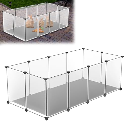 XMTECH Utomhuskapsling utomhushage kanin, inhägnad för smådjur av plast, kaninstall för kaninhasar hamster kanin, vit transparent platta med dörr, 145 x 75 x 48 cm
