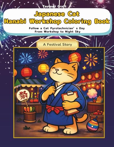 Japanese Cat Hanabi Workshop Coloring Book: Follow a Cat Pyrotechnician’s Day From Workshop to Night Sky