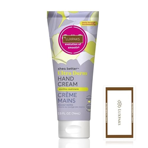 Skincare Set - Contains eos Vanilla Cashmere Hand Cream, Moisturizer for Dry Hands, Lasting Protection, 2,5 oz with a Luxpaks Cleansing Wipe
