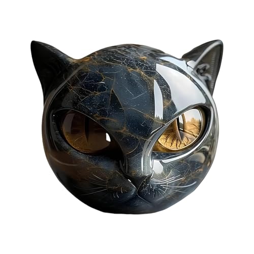 Luxury Black Cat Stone Sculpture - Hand -snidade kristaller och helande stenar snidade | Katthuvudskulptur | Kitten Figurine | Harts kattunge konststaty, söta dekoration ädelstenar gåvor för kattälska