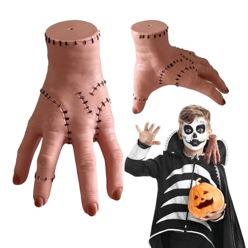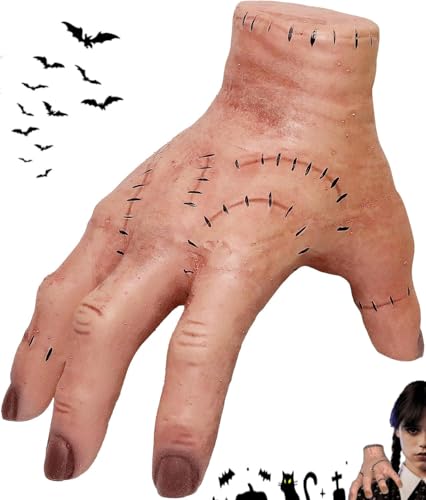Halloween hand faJoek Thing Hand Addams hand Wednesday hand, halloween falsk hand latex, läskig handrekvisita, läskig trasig hand, perfekt som gotisk & bröllopsdag dekoration