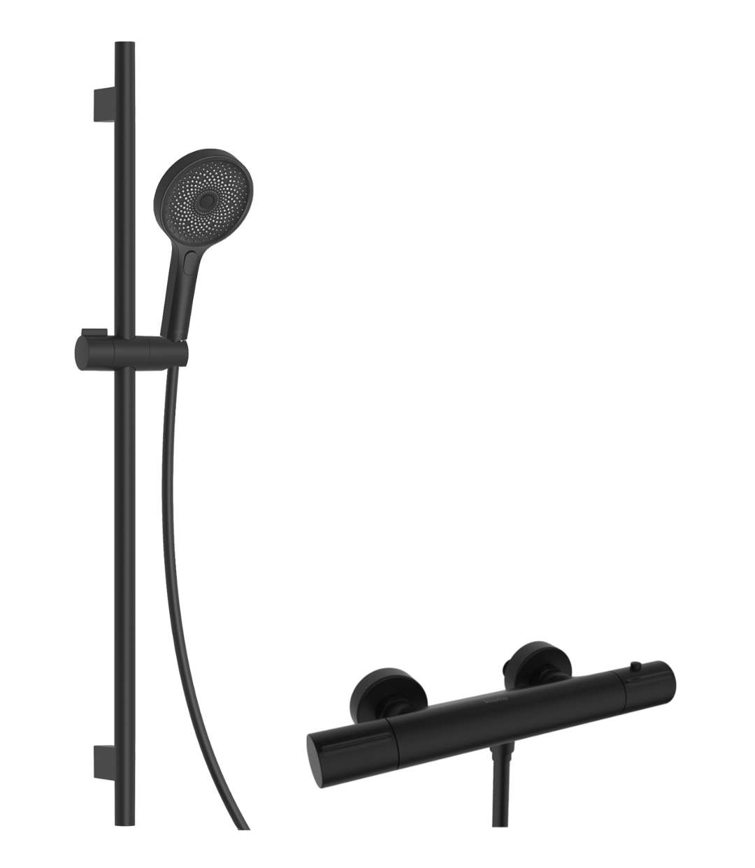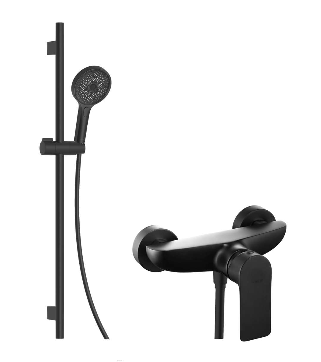 kielle Vega - Shower set with mixer tap, riser rail, shower hose and hand shower, matte black 20618SN14